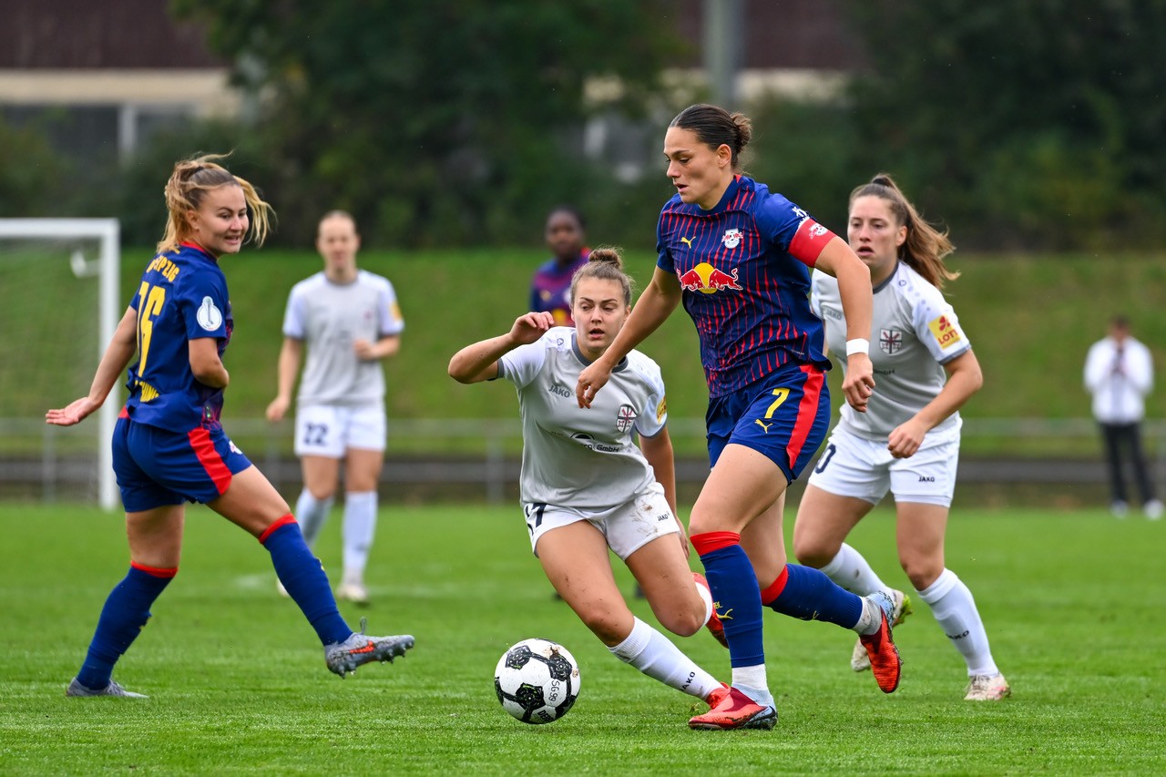 Auch die SG 99 Andernach bekam mit Bundesligist RB Leipzig eine schwierige Aufgabe gestellt. Nach einem Handspiel entschied der Schiedsrichter früh auf Elfmeter für die Gäste, den Giovanna Hoffmann sicher verwandelte (6.). In der Folge zeigte RB seine ganze Offensivstärke: Marleen Schimmer erhöhte auf 2:0 (17.), Delice Boboy traf erstmals für Leipzig (32.), ehe Hoffmann mit zwei weiteren Toren (35./38.) ihren Hattrick komplettierte. Im zweiten Durchgang traf Mai Kadowaki doppelt (77., 90.) zum Endstand von 0:7.