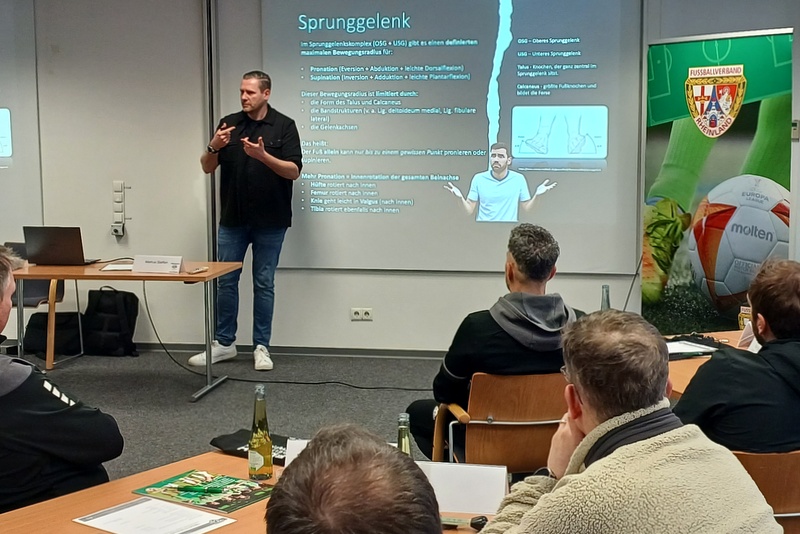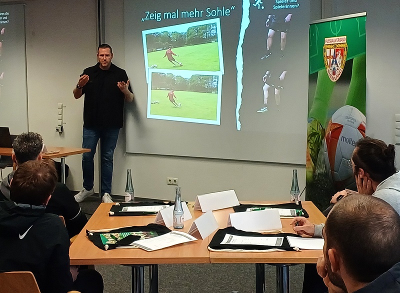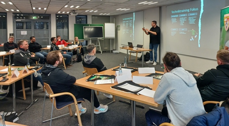Diese Rolle übernahm in diesem Jahr Techniktrainer Markus Steffen, der unter anderem im Jugendbereich von Borussia Mönchengladbach sowie mit verschiedenen Profispielern arbeitet. Steffen gab spannende Einblicke in seine Arbeit mit Profispielern und zeigte auf, mit welchen kleinen Hebeln man technische Fortschritte erreichen kann. Viele der vorgestellten Ansätze ließen sich auf die tägliche Trainingsarbeit im Vereinsalltag übertragen – genau das, was sich die Teilnehmer von der Veranstaltung erhofft hatten.