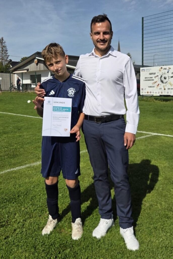 Der Fußballverband Rheinland hat Robin Gasiorowski von der JSG Welschbillig als Jahressieger der Aktion „Fair ist mehr“ für sein außergewöhnlich faires Verhalten auf dem Platz ausgezeichnet. Bei einem D-Junioren-Kreisklassenspiel gegen die JSG Saar-Mosel Konz im April dieses Jahres zeigte der elfjährige Robin, was Fair Play im Fußball wirklich bedeutet.