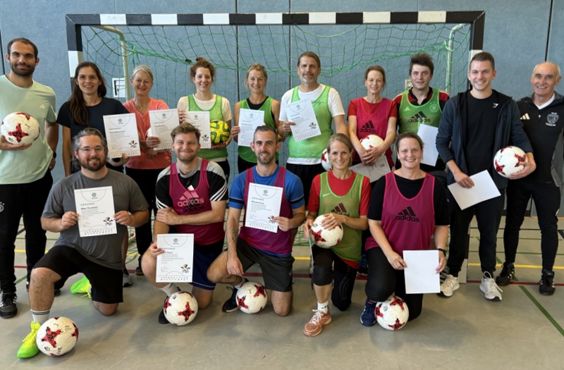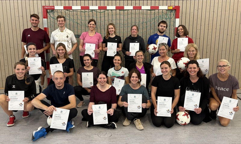 Zum Abschluss erhielten alle Teilnehmenden eine Urkunde, eine hochwertige DFB-Hochglanz-Broschüre mit konkreten Stundenbeispielen sowie einen Fußball zur Unterstützung der Praxis in ihrem zukünftigen Sportunterricht.