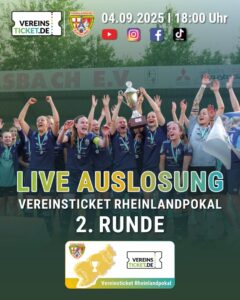 Vereinsticket Rheinlandpokal: Paarungen der zweiten Runde werden am Donnerstag gezogen